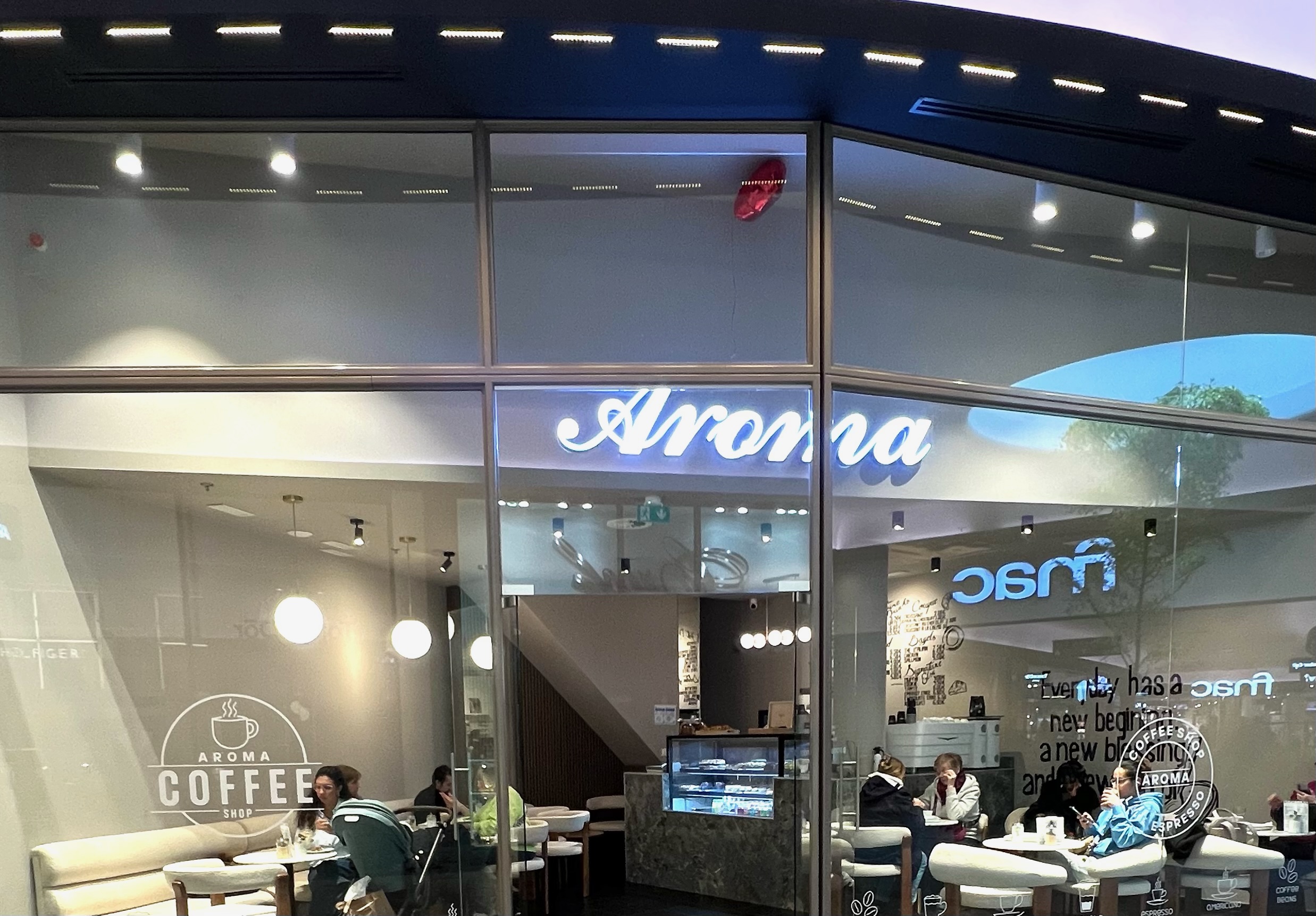 Aroma Coffee est un café moderne, proposant des boissons chaudes et froides de qualité (espresso, latte, cappuccino, thés, boissons signature), ainsi qu’une offre de petite restauration. Nous servons des viennoiseries, cookies, tartes, cakes et une sélection de bagels préparés sur place. L’établissement fonctionne en service rapide, avec possibilité de consommer sur place ou d’emporter.